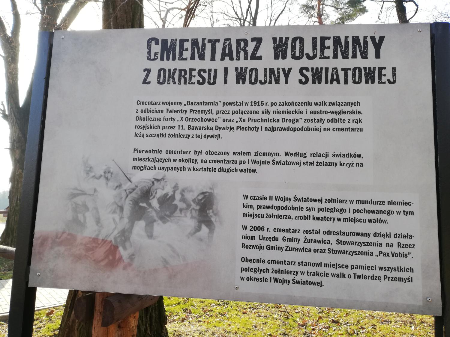 Cmentarz z 1 Wojny Światowej - prawdopodobnie byli tu też grzebani niemieccy żołnierze w czasie 2 Wojny Światowej w czasie której cmentarz był zadbany, były usypane mogiły przez stacjonujących żołnierzy na okolicznych fortach.